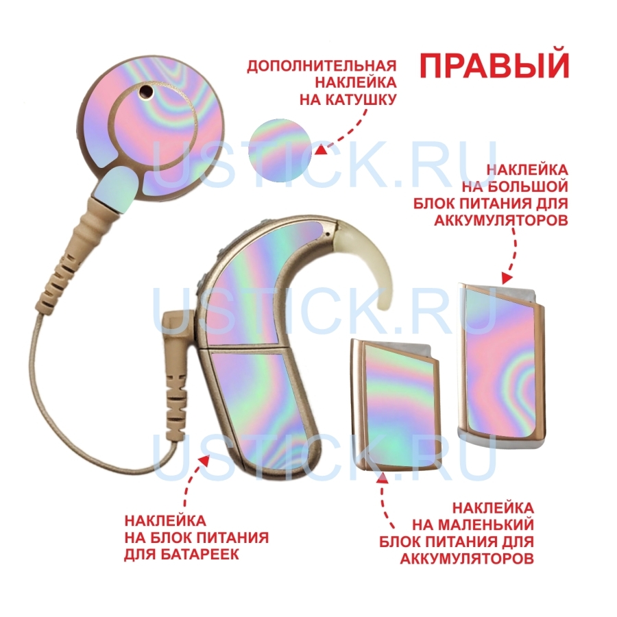 - наклейка на катушку - 3 шт (1 шт - дуга на внешнюю часть катушки, 1 шт - круг с выемкой под микрофон на внутреннюю часть катушки, 1 шт - круг без выемки на внутреннюю часть катушки),