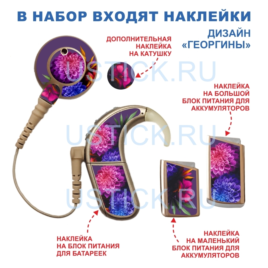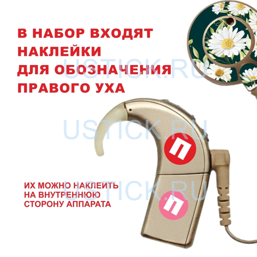 Набор наклеек "Цветы" для NAIDA Advanced Bionics включает в себя 5 потрясающих дизайна наклеек для речевого процессора и наклейки с буквами Л или П (для левого и правого аппарата соответственно).